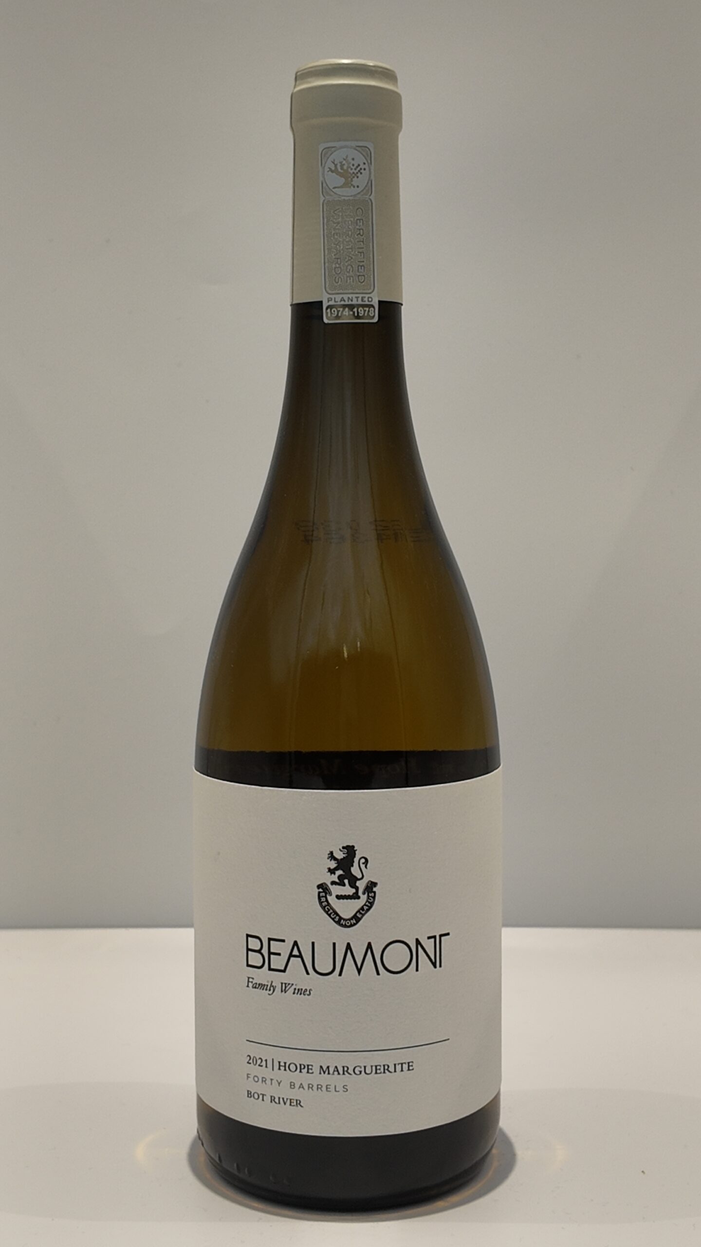 Niché dans la région de Bot River en Afrique du Sud, Beaumont Wines est un domaine familial réputé pour ses vins authentiques et expressifs. Le domaine met en avant des cépages tels que le Chenin Blanc et le Pinotage, reflétant le terroir unique de la région. Leur approche artisanale et respectueuse de l’environnement se traduit par des vins équilibrés, alliant fraîcheur et complexité.