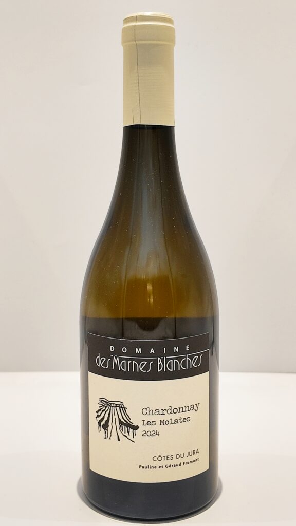 Cette cuvée Les Molates provient de vignes de Chardonnay d’environ 35 ans plantées à 300 mètres d’altitude sur les marnes blanches de Cesancey. Vendanges manuelles, pressurage direct puis fermentation naturelle en levures indigènes avec thermorégulation. L’élevage dure dix mois en foudres et fûts de plusieurs vins, sans bâtonnage, avec une dose homéopathique de soufre à la mise en bouteilles. Le 2024, mis en bouteille au printemps 2025, offre une lecture ample et texturée du cépage sans perdre la tension jurassienne. Au nez, on retrouve la poire mûre, les fruits secs, la pierre chaude, avec une touche de beurre salé. En bouche, le vin conjugue volume et fraîcheur dans un bel équilibre entre densité et énergie. L’allonge minérale traverse le palais, avec un gras bien présent parfaitement contrebalancé par une vivacité saline. Un Chardonnay complet, charnel mais précis.